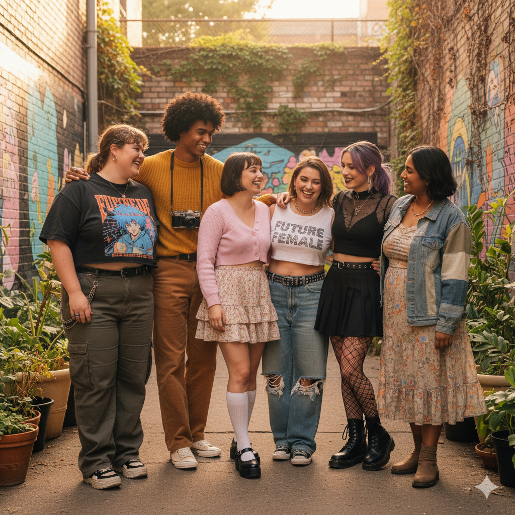 Our mission isn't just about selling clothes; it's about fostering self-love and confidence in a community that gets it. We collaborate with diverse creators and aesthetic lovers to spread the message that everyone belongs here. Whether you're rocking our fits for a special hangout, a themed party, or just to feel more like yourself every day, remember: you don't need to change for the aesthetic—the aesthetic adapts to you.